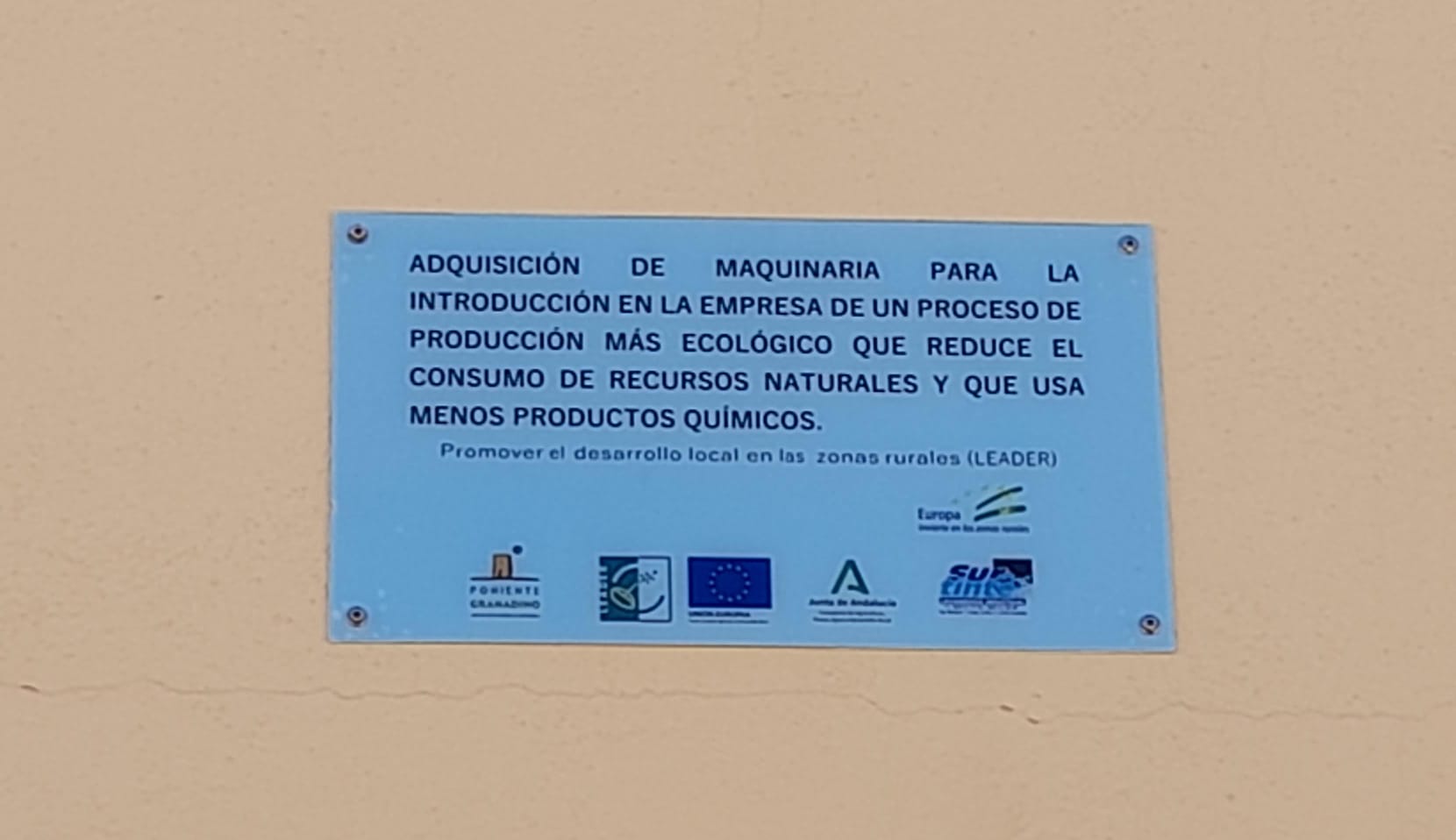 SURTINTE, S.L. ha recibido una ayuda de la Unión Europea con cargo al Fondo Europeo Agrícola de Desarrollo Rural y en colaboración con el GDR Poniente Granadino (@GDR Poniente Granadino) para el proyecto «ADQUISIÓN DE MAQUINARIA PARA LA INTRODUCCIÓN EN LA EMPRESA DE UN PROCESO DE PRODUCCIÓN MÁS ECOLÓGICO QUE REDUCE EL CONSUMO DE RECURSOS NATURALES Y QUE USA MENOS PRODUCTOS QUÍMICOS» que tiene por objetivos: